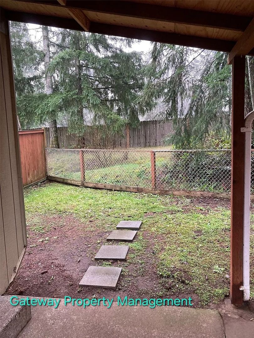 Fenced back yard. One designated covered parking spot.